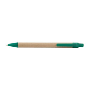 Bolígrafo de cartón con sistema de apertura retráctil.
