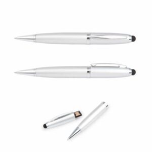 Bolígrafo con memoria USB de 16GB. Sistema de apertura twist en la parte inferior, touch para dispositivos con pantalla táctil y clip metálico. No incluye estuche individual. Precio sujeto a cambio sin previo aviso.